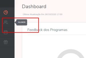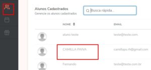 Clique na aba Alunos, depois selecione o aluno que deseja alterar os dados e em seguida clique no botão na parte superior que fica acima do nome do aluno, o lápis.