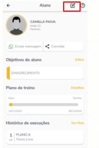 Acesse o treino web com seus dados de login, depois clique em aluno e selecione o aluno clicando no nome, ou, escreve o nome do aluno na caixa de busca na parte superior da pagina, depois clique em “Editar”, altere o que for preciso e clique em “Salvar” pronto, os dados do seu aluno foram atualizados.