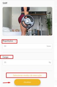 Dentro do PLANO DE TREINO você irá ate o exercício que deseja editar o modo de execução pressione por 2 segundos o card do exercício para alterar.